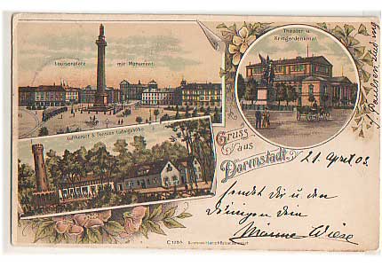 Darmstadt Krieger-Denkmal,Theater Litho ca 1900