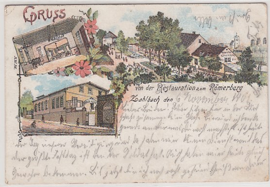 Zahlbach Mainz am Rhein Litho Ansichtskarte Restaurant Römerberg 1901