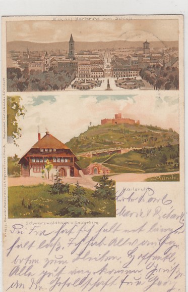 Karlsruhe mit Schwarzwaldhaus Lauterberg Litho Ansichtskarte von 1903
