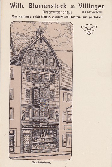 576 [7730w32] |  | Villingen-Schwenningen im Schwarzwald Werbung Reklame Blumenstock Uhrenversandhaus ca 1910 | 10.00EUR | In den Warenkorb |