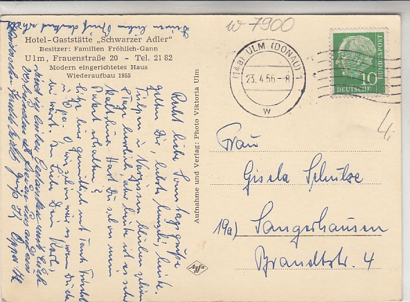 284 [7900w122] |  | Ulm an der Donau Hotel Schwarzer Adler 1956 | 3.00EUR | In den Warenkorb |