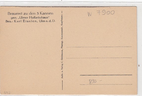 271 [7900w143] |  | Ulm an der Donau Brauerei zu den 3 Kannen Ulmer Hofbräuhaus ca 1920 | 8.00EUR | In den Warenkorb |