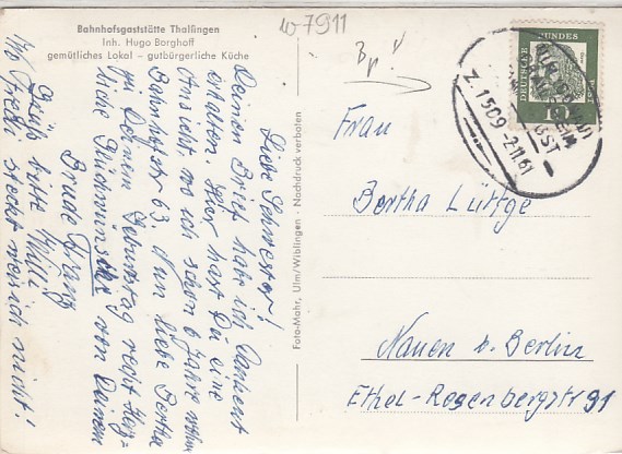 258 [7911w1] |  | Thalfingen Bahnhofgaststätte 1961 | 4.00EUR | In den Warenkorb |