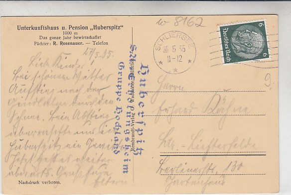 1006 [8162w33] |  | Unterkunftshaus Huberspitz bei Neuhaus Schliersee 1935 | 9.00EUR | In den Warenkorb |