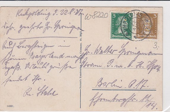 Traunstein ,Werbekarte Reichsbahn-Direktion München