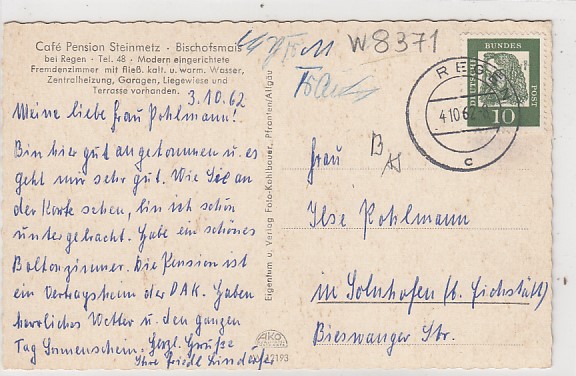 Bayerisch Böbrach Cafe Konditorei Triendl 1961
