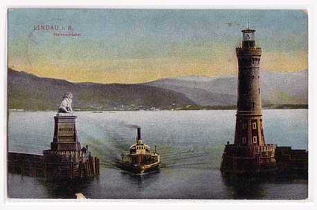 Lindau in Bayern Raddampfer Hafeneinfahrt 1909