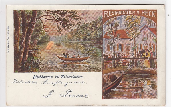 Blechhammer bei Kaiserslautern Künstlerkarte Restaurant A.Heck ca 1900