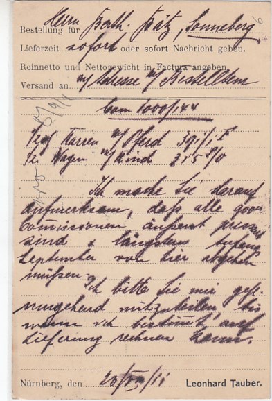 Nürnberg Postkarte Werbung Leonhard Tauber 1911