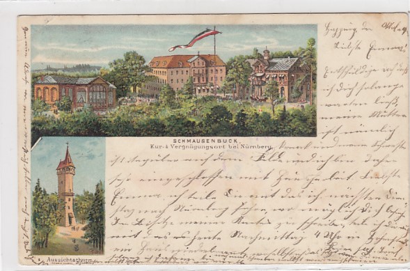 Nürnberg Schmausenbuck Litho Ansichtskarte von 1897