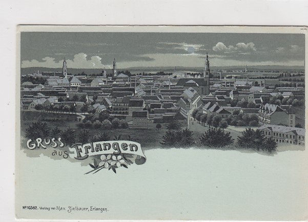 Erlangen Mondschein Litho Ansichtskarte ca 1900