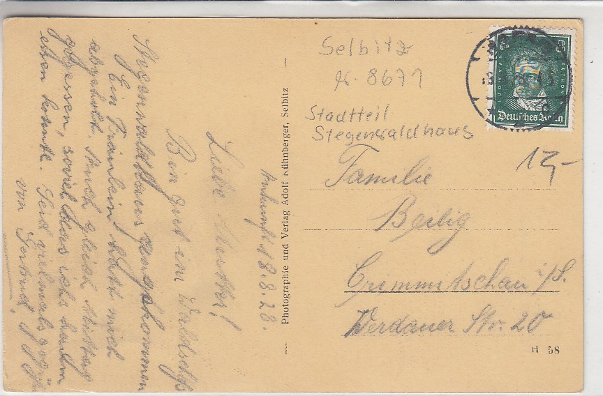 Selbitz Stadtteil Stegenwaldhaus Holtel Waldschloß 1928