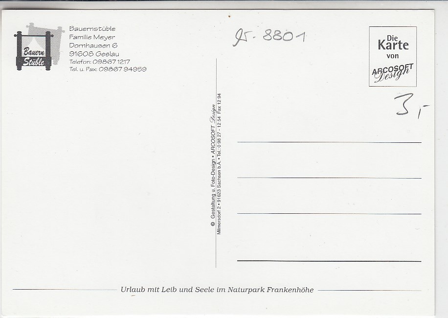 123 [8801w9] |  | Dornhausen Geslau ca 1990 | 3.00EUR | In den Warenkorb |