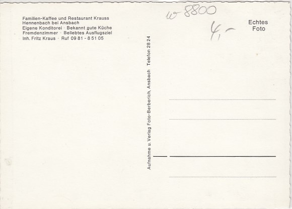 157 [8800w25] |  | Hennenbach bei Ansbach ca 1965 | 4.00EUR | In den Warenkorb |
