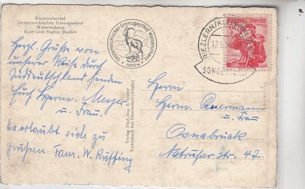 1567 [754161] |  | Walserschanz Kleines Walsertal Vorarlberg bei Oberstdorf Stempel Riezlern 1931 | 5.00EUR | In den Warenkorb |