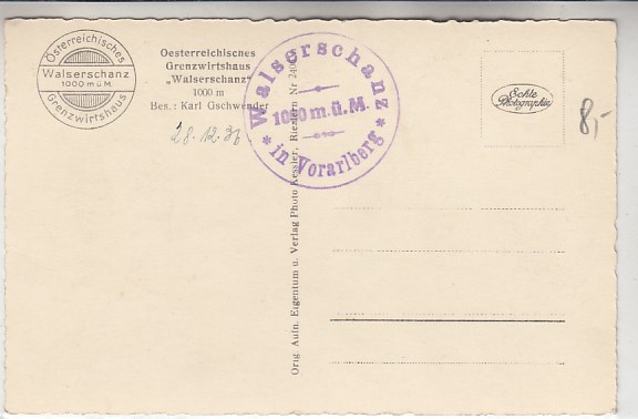 1568 [754172] |  | Walserschanz Kleines Walsertal Vorarlberg bei Riezlern Österreich 1936 | 6.00EUR | In den Warenkorb |