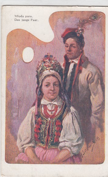 Krakau-Krakow Polen Künstlerkarte Trachten Goral z Wisly ca 1930
