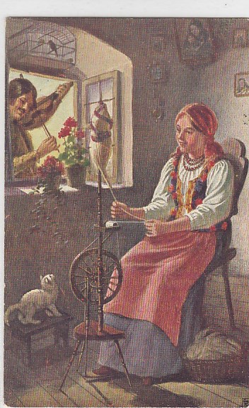 Künstlerkarte Polen Kellemes Spinnrad 1917