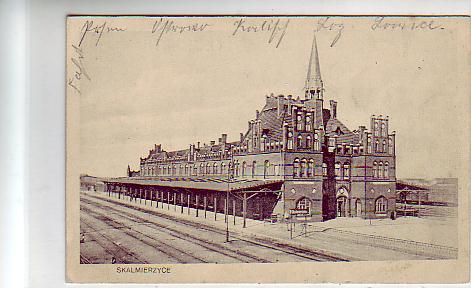Skalmierzyce Polen Bahnhof 1915 Bahnpoststempel Breslau-Kohlfurt