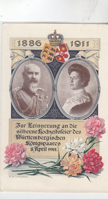alte Ansichtskarten Adel Monarchie silberne Hochzeit Baden Württemberg Königspaar Ganzsache