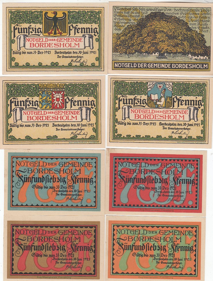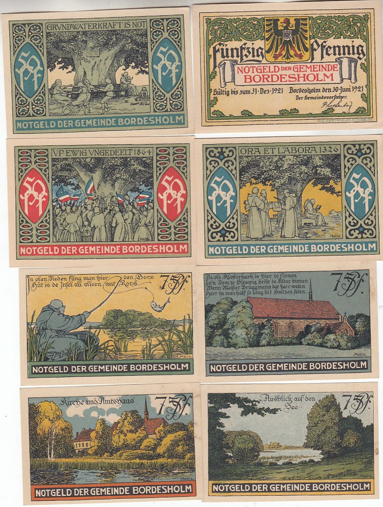 Notgeld Geldscheine 8x Bordesholm Gemeinde in Schleswig-Holstein