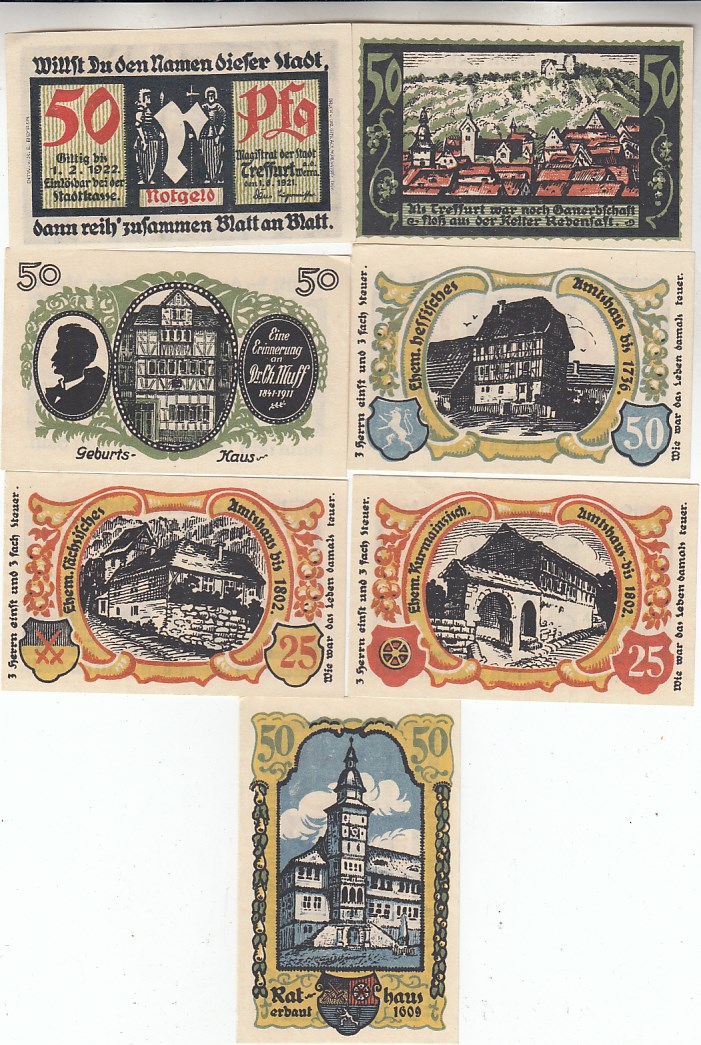 Notgeld Geldscheine 7x Treffurt Thüringen