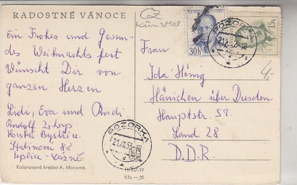 Radostne Vanoce Künstlerkarte Tschechien 1953