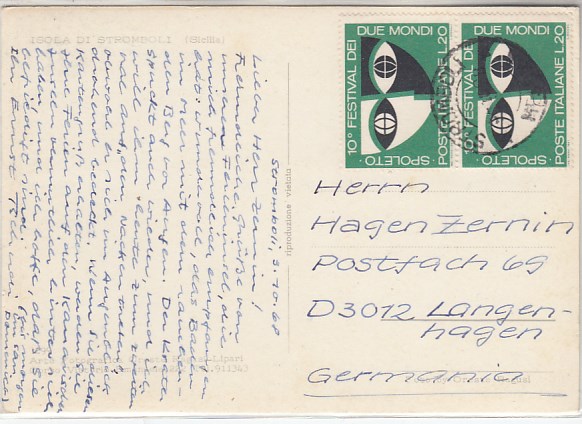 Isolda di Stromboli Vulkan Italien Italy old postcard alte Bilder 1968