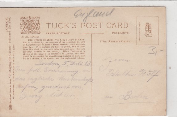 London England old postcard Tower Militär Guard Mouting