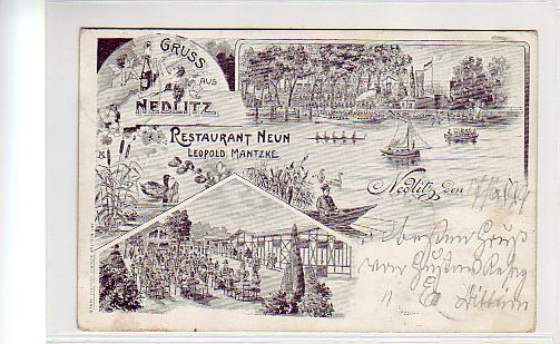 Nedlitz bei Potsdam Restaurant ,Rudern,Litho von 1899