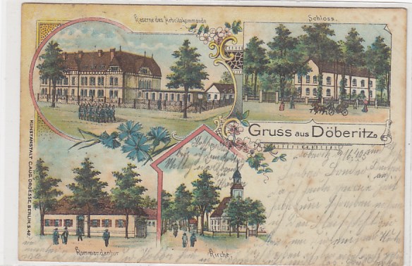 Dallgow Döberitz Kaserne,Schloss,Kirche Litho von 1900