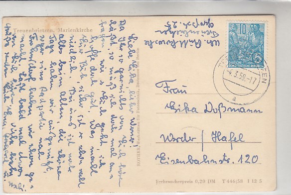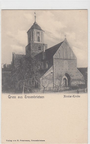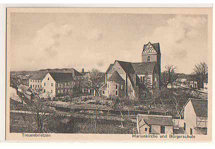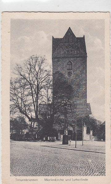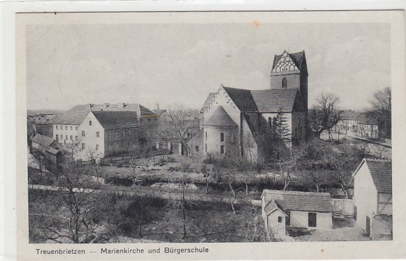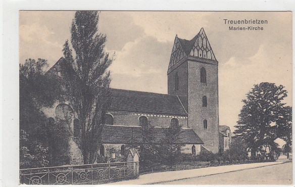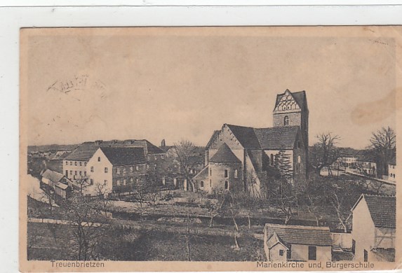 Treuenbrietzen Kirche Bahnpoststempel Nauen-Jüterbog 1927