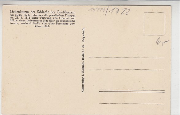 Großbeeren Schlacht Gedenkturm 1963 Großbeeren Schlacht Gedenkturm 1963 3.00EUR In den Warenkorb