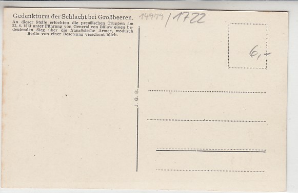Großbeeren Schlacht Gedenkturm 1963 Großbeeren Schlacht Gedenkturm 1963 4.00EUR In den Warenkorb