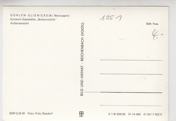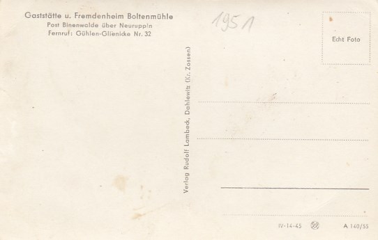 Binenwalde-Boltenmühle Gühlen Glienicke 1960