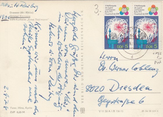 PLZ 01 u. 019 Bad Schandau Dresden Kamenz Tharandt Meißen Riesa->