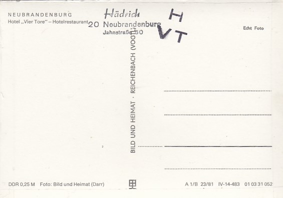 Neubrandenburg Hotel Zu den vier Toren 1979
