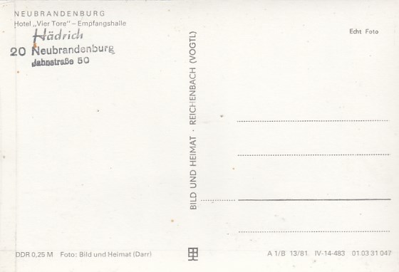 Neubrandenburg Hotel Zu den vier Toren 1981