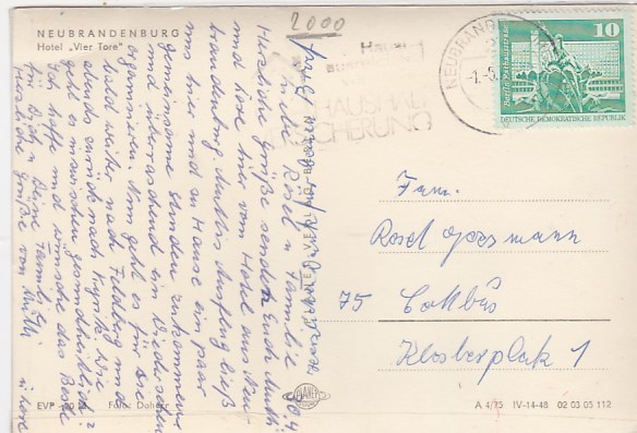 Neubrandenburg Hotel Zu den vier Toren 1974