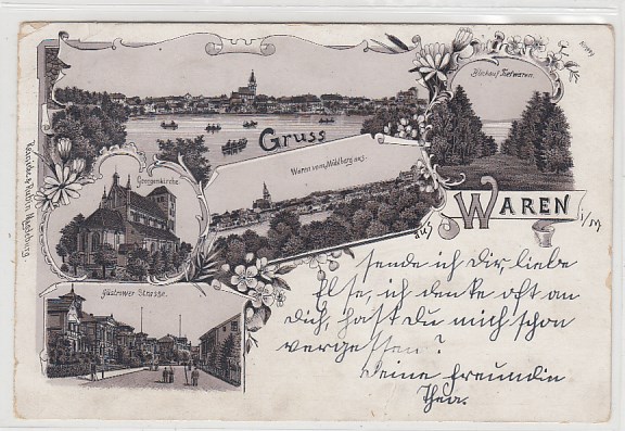 Waren an der Müritz Litho Ansichtskarte von 1897