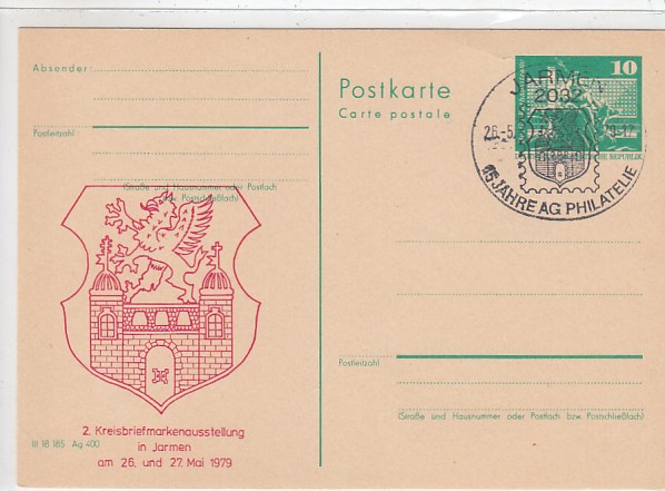 Jarmen Mecklenburg Postkarte mit Sonderstempel 1979