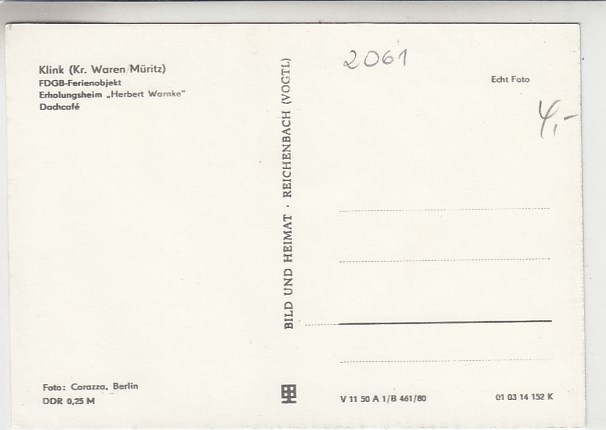 Klink , Müritz Erholgsheim Völkerfreundschaft 1975