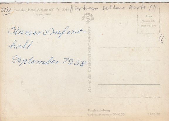 Prenzlau Hotel Uckermark Treppenhaus 1958