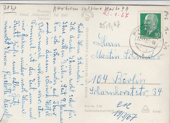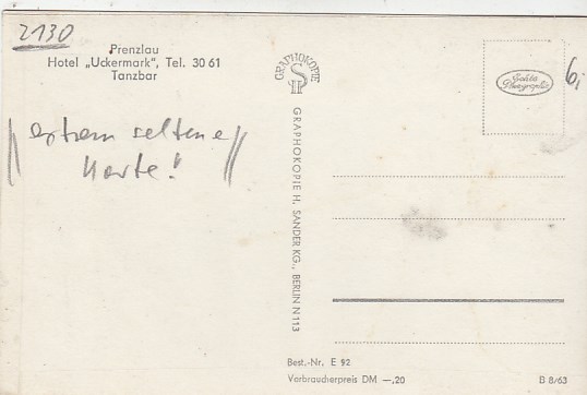Prenzlau Hotel Uckermark Tanzbar 1963