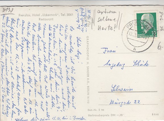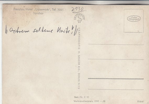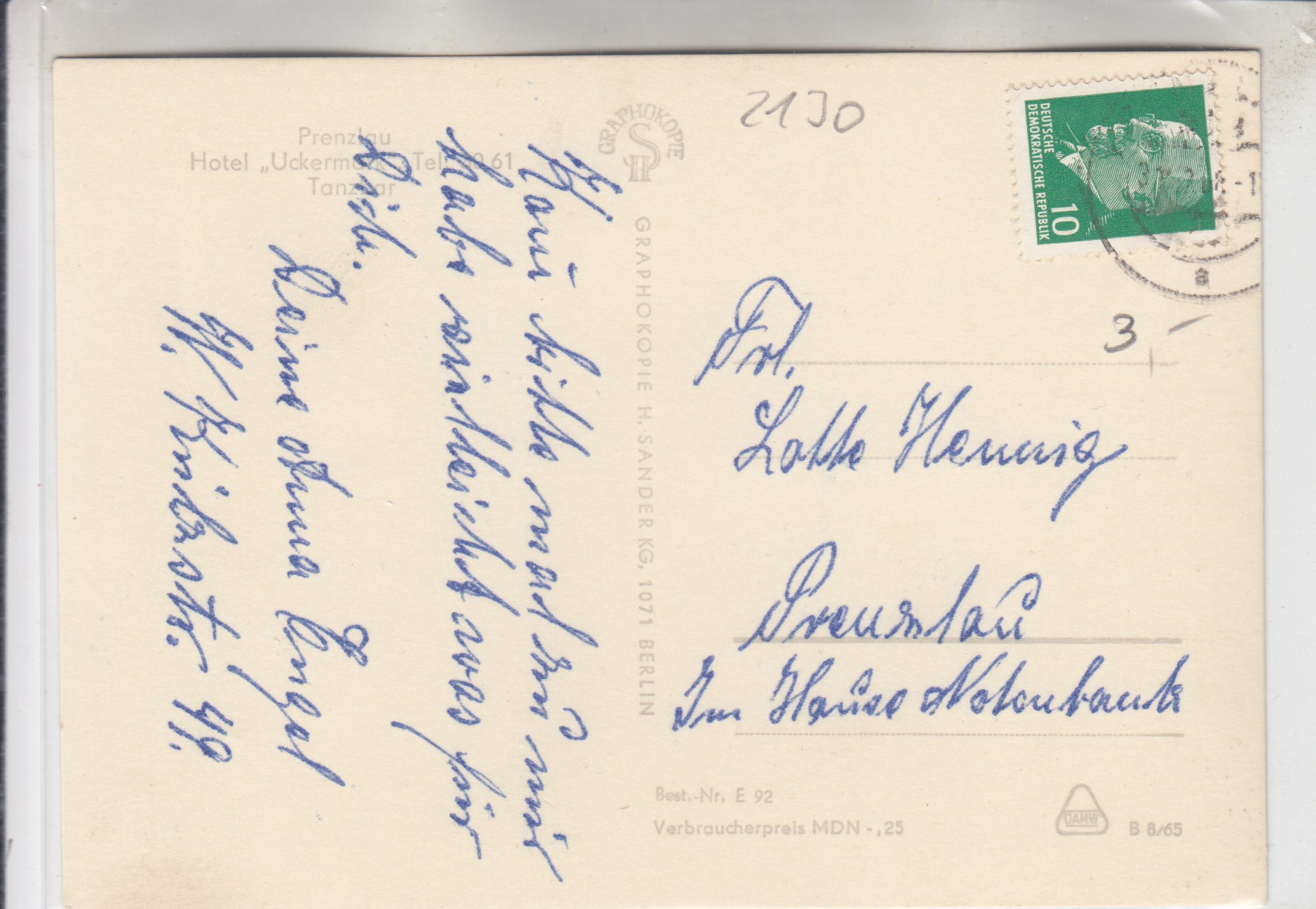 Prenzlau Hotel Uckermark Tanzbar 1961