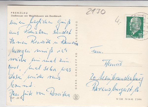 PLZ 18-19 Bad Wilsnack Güstrow Rostock Schwerin Warnemünde->