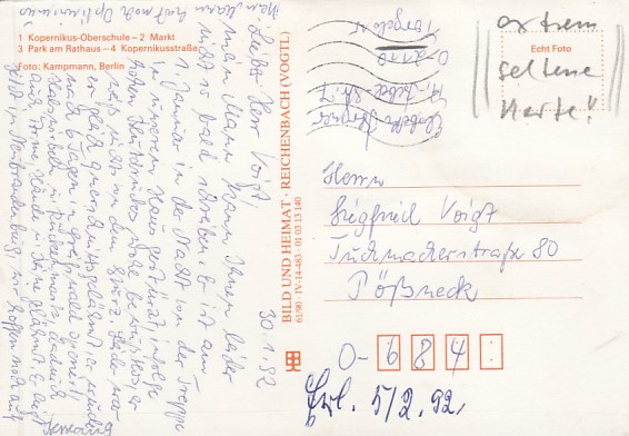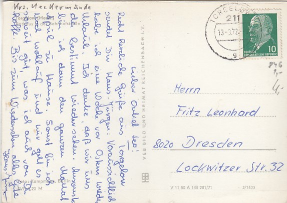 PLZ 01 u. 019 Bad Schandau Dresden Kamenz Tharandt Meißen Riesa->