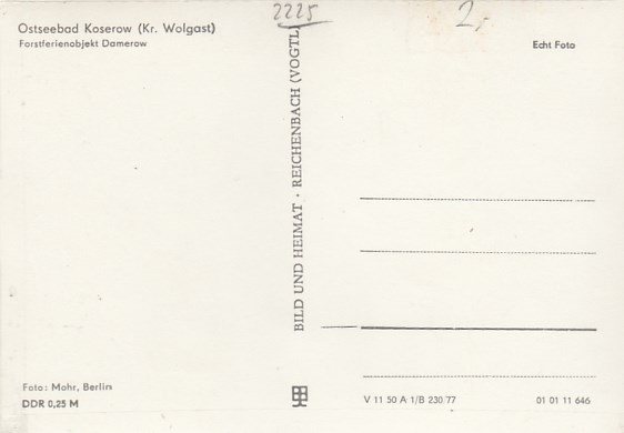 Ostseebad Koserow Usedom Ferienobjekt Damerow 1981