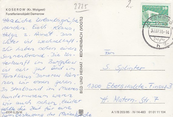 Ostseebad Koserow Usedom Ferienobjekt Damerow 1985