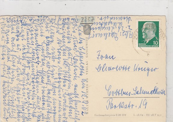 PLZ 01 u. 019 Bad Schandau Dresden Kamenz Tharandt Meißen Riesa->